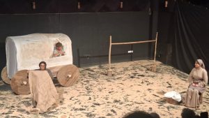 در نسخه اصلی بکت، دو مرد منتظر گودو هستند؛ در این اقتباس، دو زن منتظر مردان غایب خود هستند. اما نکتهی درخشان این اجرا، آن است که انتظار آنها صرفاً برای بازگشت شوهران نیست، بلکه برای بازگشت معنا، حضور، و حتی «دیدهشدن» است.